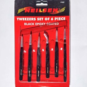 6 piece Black Epoxy Coated Tweezers set CT4303