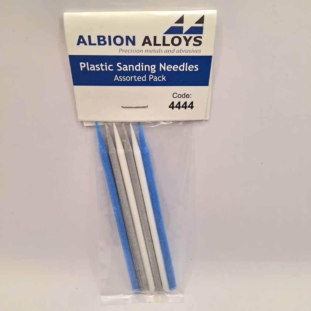 Albion Alloys Mixed Pack of 6 Sanding Needles. Assortment Pack, 2 needles of each grit per pack (6 per pack)A highly effective sanding device. Particularly useful for sanding / cleaning holes, irregular shaped aperture, air intakes, exhausts, cockpits and cupolas etc…