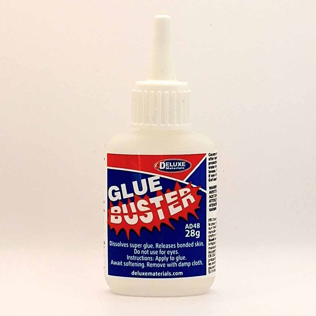 Deluxe Materials Roket Glue Buster 28g Superglue Debonder and Dissolver. Releases bonded skin and removes superglue stains. Stays on site for faster debonding action.