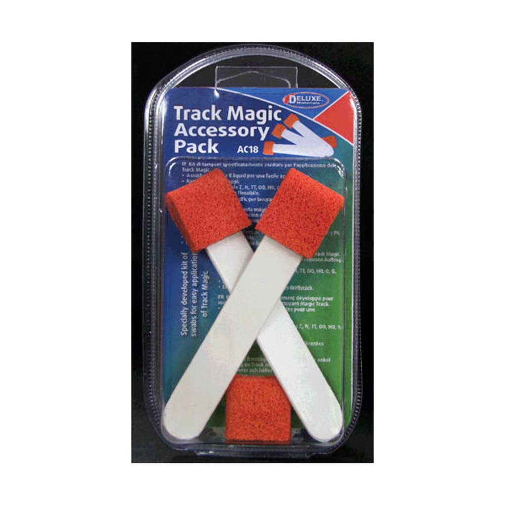 Deluxe Materials AC18 Track Magic Accessory Pack. Specially developed kit of 3 swabs with handles and 1 spare sponge for easy application of Track Magic.
