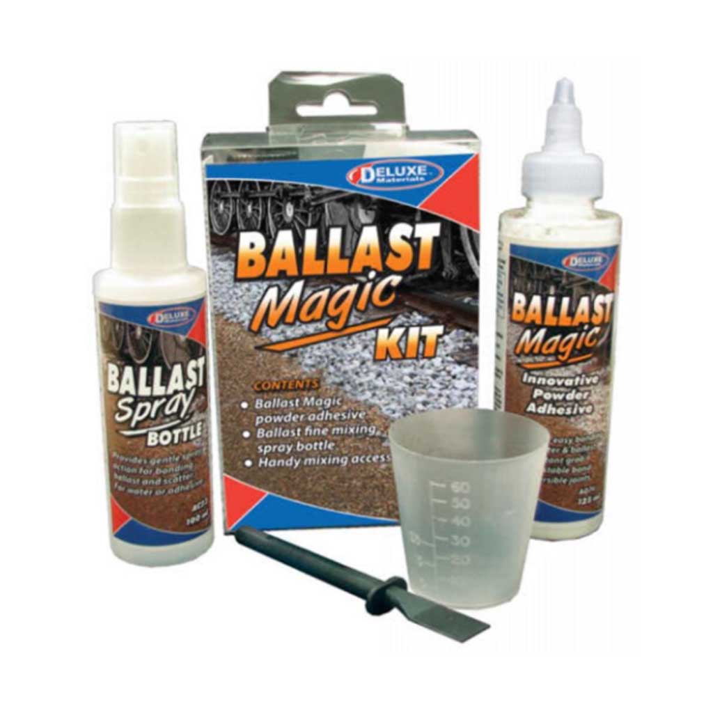 Deluxe Materials AD76 Ballast Magic Kit. Boxed kit containing Ballast Magic (125ml), Ballast fine misting spray bottle, and handy mixing accessories.