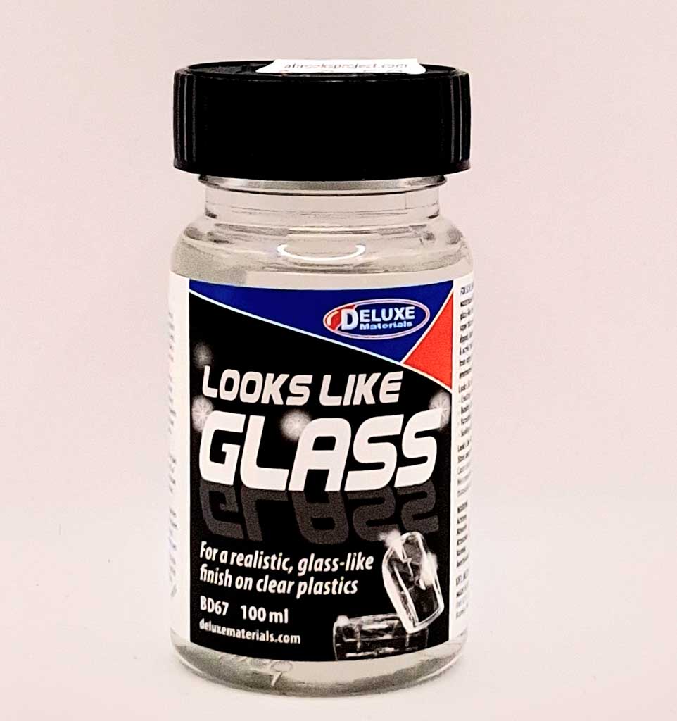 Deluxe Materials BD67 Looks Like Glass 100ml. Looks Like Glass is a super- thin, water- based, transparent fluid for the creation of a smooth glass-like effect on kit plastics such as clear canopies. Plastic parts are simply dipped and allowed to dry for 2-3 hours. Surface detail is retained. Looks Like Glass can be used for the following modelling applications e.g.Glass like finish on canopies, windows etc.