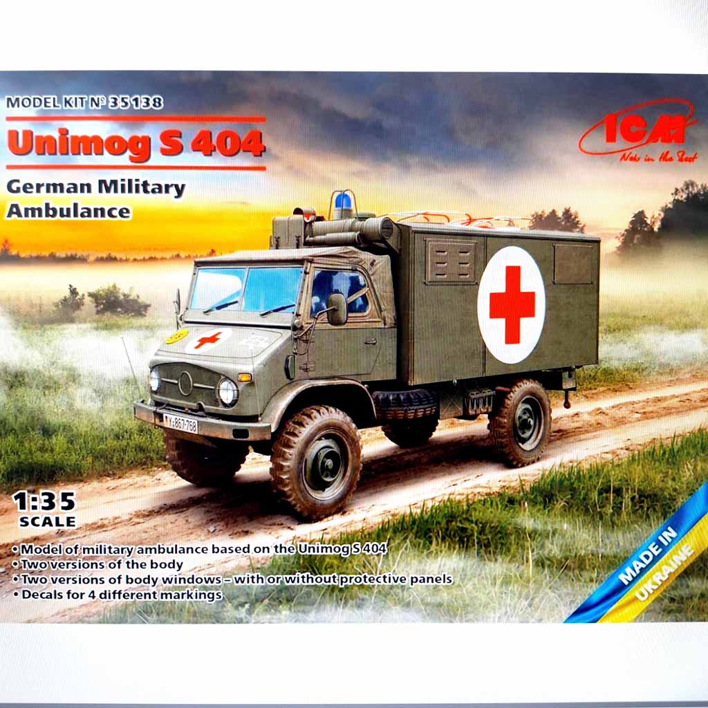 ICM 35138 Unimog S404 German Military Ambulance 1:35 Scale.Paints and glue are not included in this set.