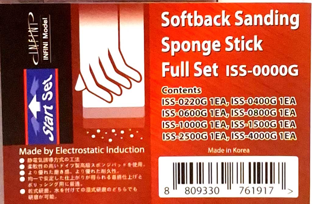 Ammo Infini ISS-0000G 8pc Softback Sanding Sponge Sponge Sticks Full Set. 220, 400,600,800,1000,1500,2500 and 400 Grits – In my eyes, this is the best sanding set out there today for plastic modellers. From coarse sanding to polishing!