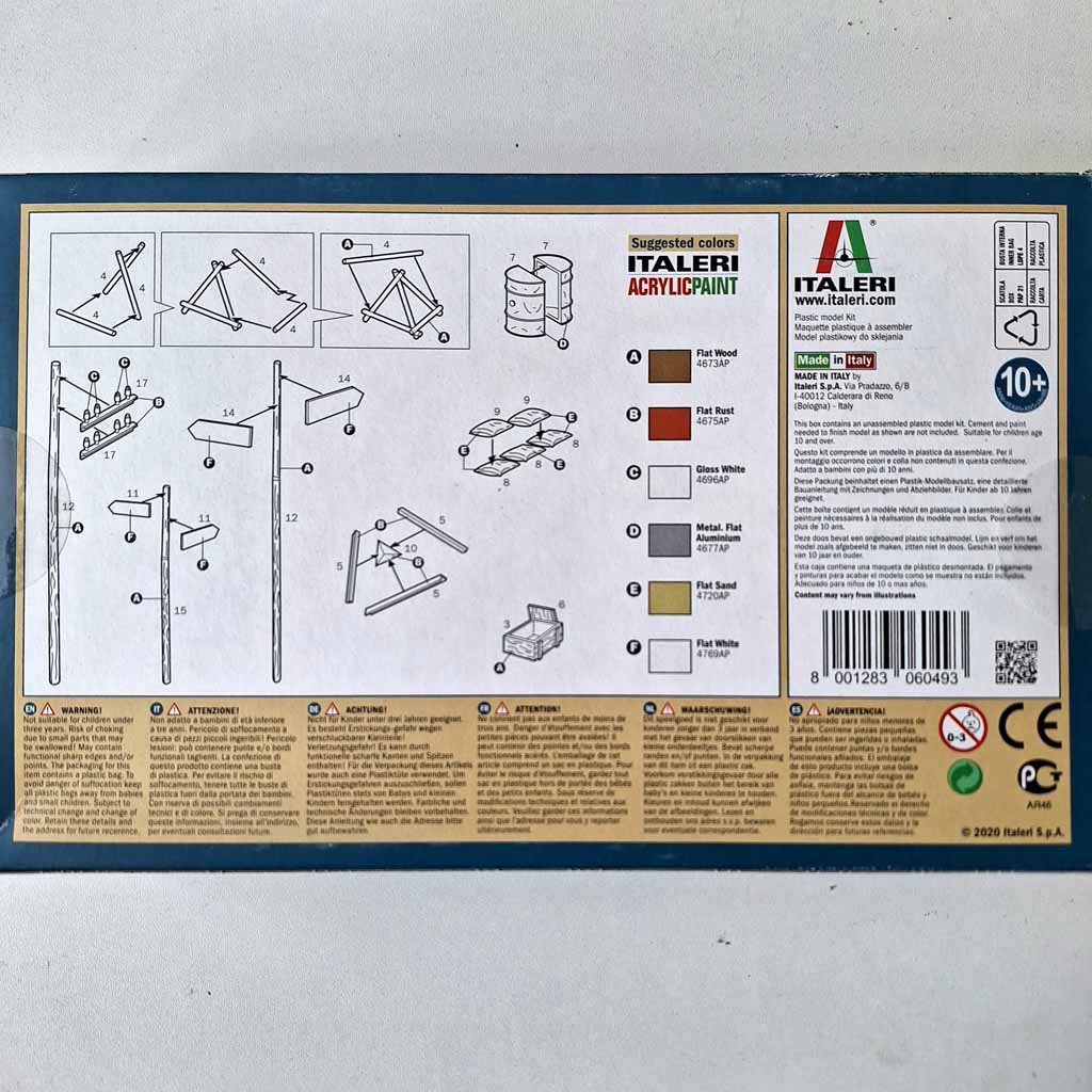 Italeri 1:72 Scale Battlefield Accessories. This set comprises of some great items to enhance any diorama or just as an addition to a model. Paints and glues are not included with this model kit.