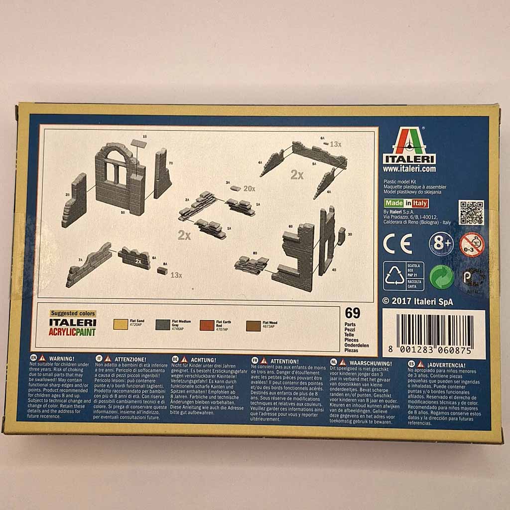 Italeri 6087 1:72 Scale Walls and Ruins. Perfect additions for any Diorama.Paints and glues are not included with this model kit