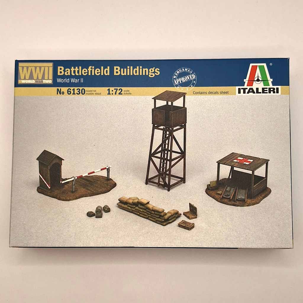 Italeri 6130 1:72 Scale Battlefield Buildings model set.Excelent additions for any WW2 Diorama.Paints and glues are not included with this model kit