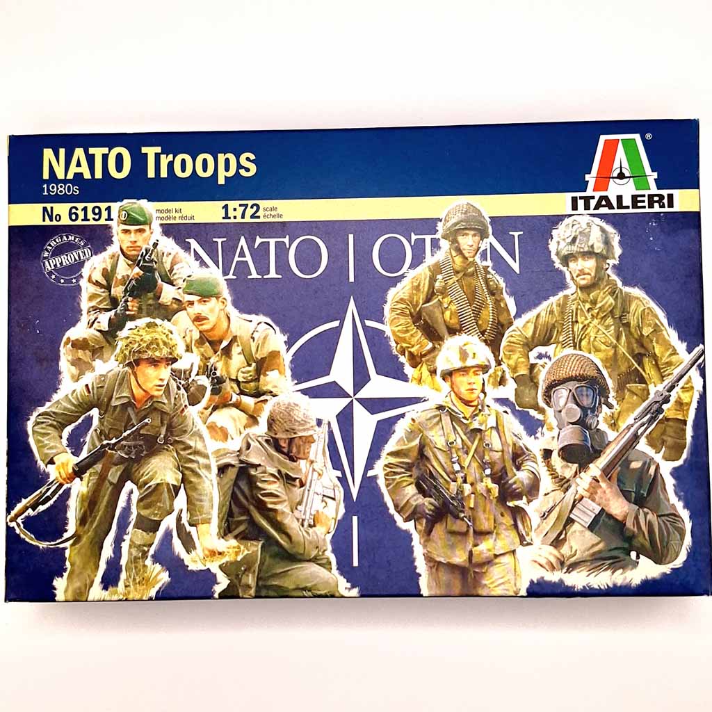 Italeri 1:72 Scale Nato (1980’s) Troop Set. There are 48 unpainted figures in this set. Great for dioramas or just as an addition to a model.Paints and glues are not included with this model kit.