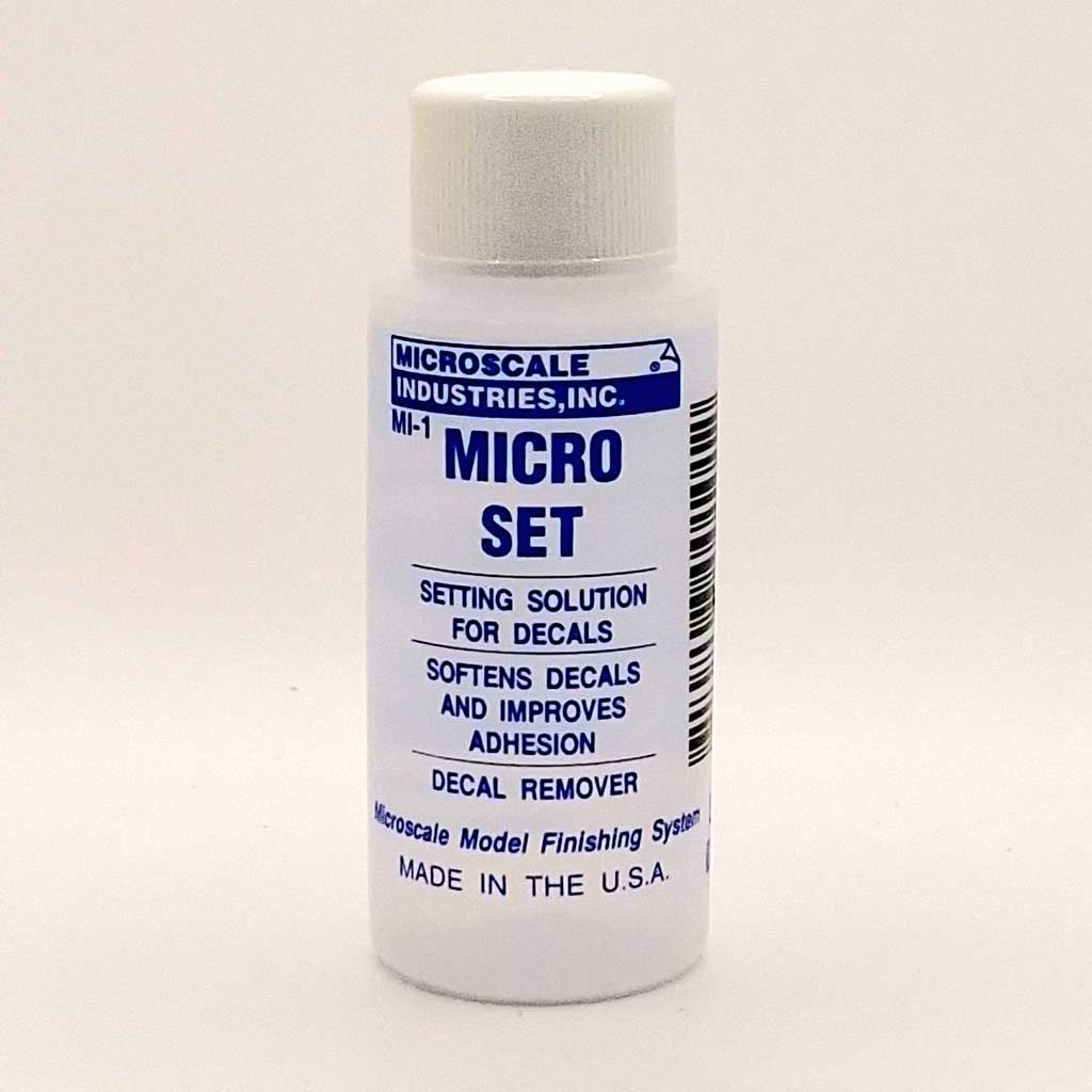 Micro Set prepares the surface with special wetting agents that cut the oils in new paint and convert the adhesive on the back of the decal to a stronger and longer lasting one. In addition, Micro Set slightly softens the decal film to make it more flexible so that it will conform better to the model’s surface. Better adhesion of the decal to the model prevents tiny air bubbles from forming and results in an invisible carrier film for the so-called “painted on look.”