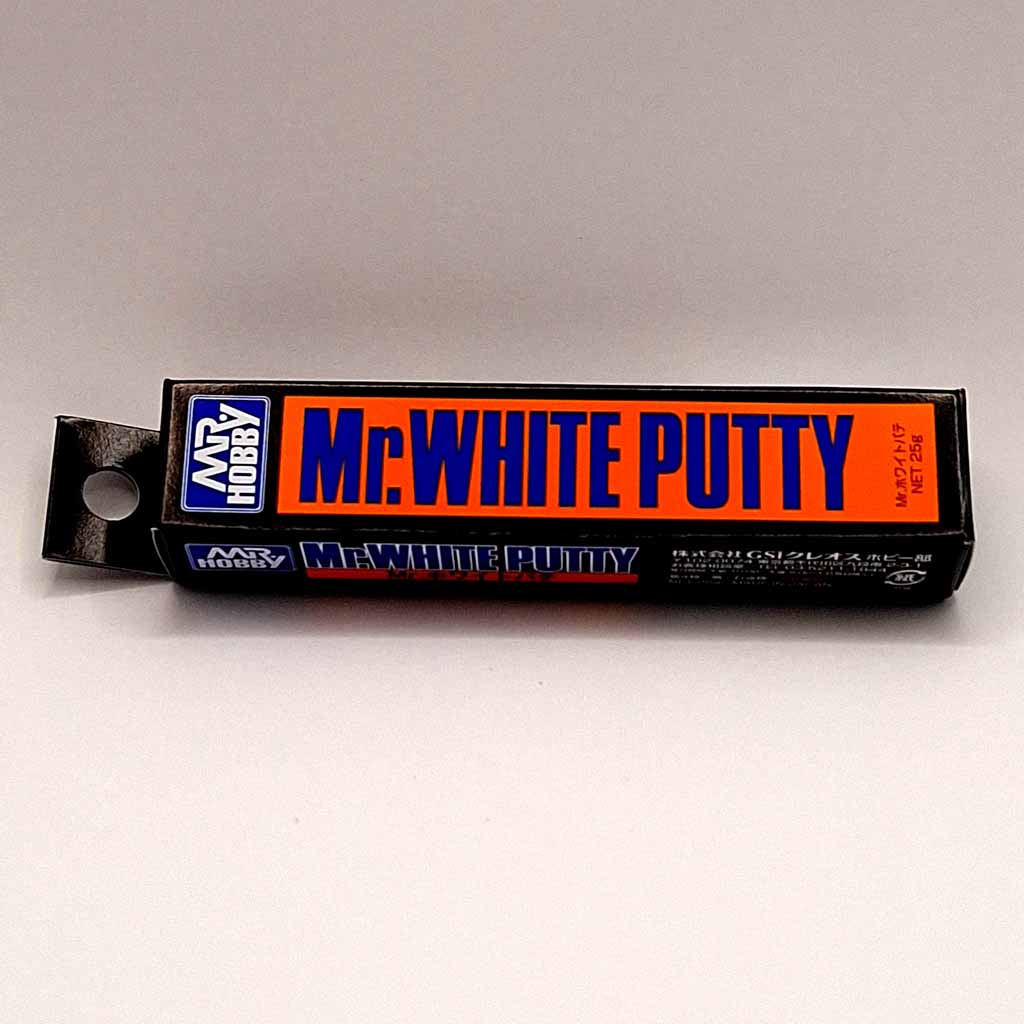 Mr Hobby P118 Mr White Putty is ideal for filling small gaps and dents. The meticulous fine detail remains but workability is even better.Mr.White Putty has exceptional resistance to paint absorption and a shade of white that has little effect on the final coat.It is ideal for filling small gaps and dents.