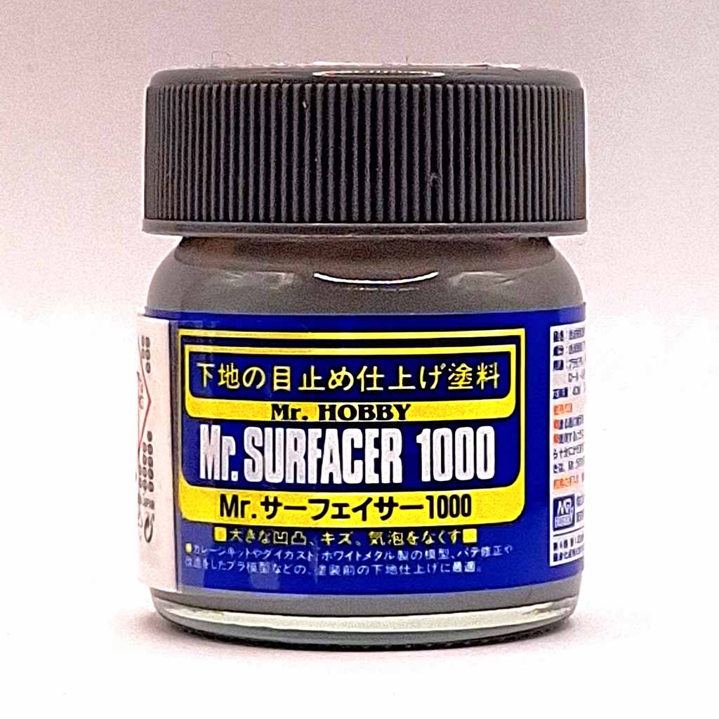 Mr Surfacer 1000 SF284 is a primer/surfacer contains finer granules than Mr Surfacer 500. They are both used in much the same way but ,due to the finer granules after sanding with waterproof sand-paper, a perfectly corrected surface is possible. Available in bottle and spray.
