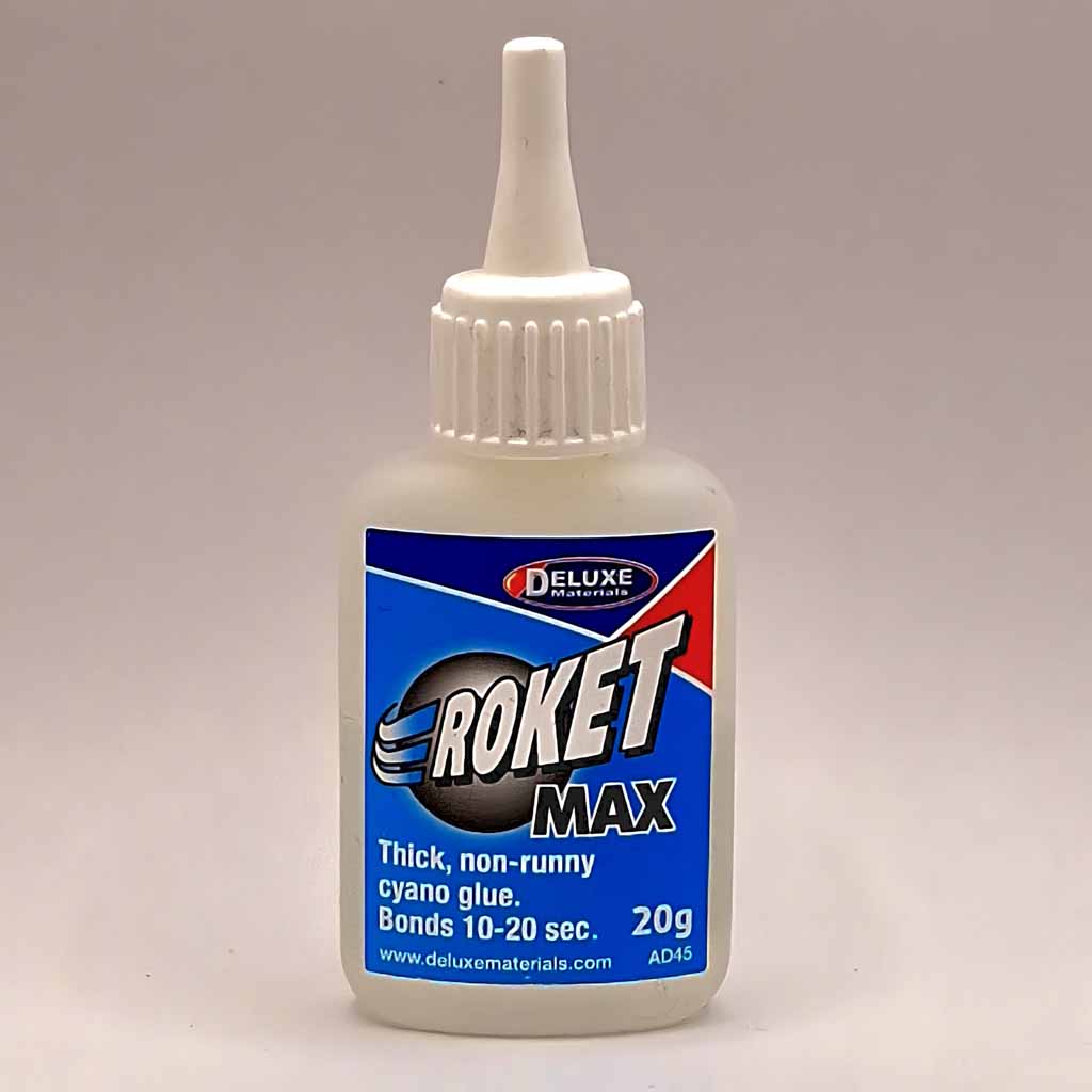 20g AD45 Roket Max High quality Cyanoacylate adhesive. Super-Thin Penetrating Adhesive, Sets in 1-5 Seconds.Part of the Roket Cyano Range from Deluxe Materials.