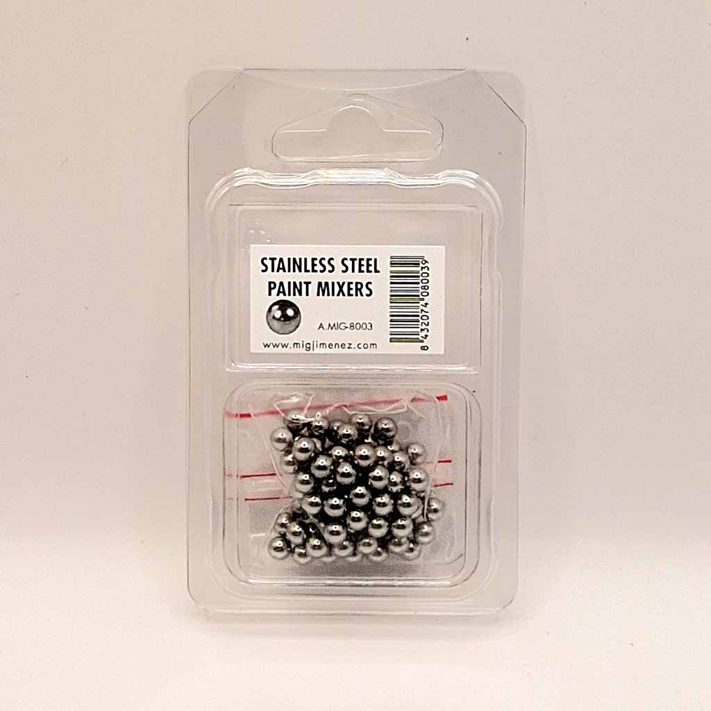Stainless Steel Paint Mixing Balls. This set includes between 70 and 80 stainless steel balls (5mm diameter) perfect for use as agitators in any paint. Add a pair to your jars and paintwork will be much easier, faster, and effective. To make a paint reach its optimum performance, it is necessary that all components are thoroughly mixed. Valid for acrylics, lacquers, enamels and any other type of liquid paint. Will not rust or alter the colour.