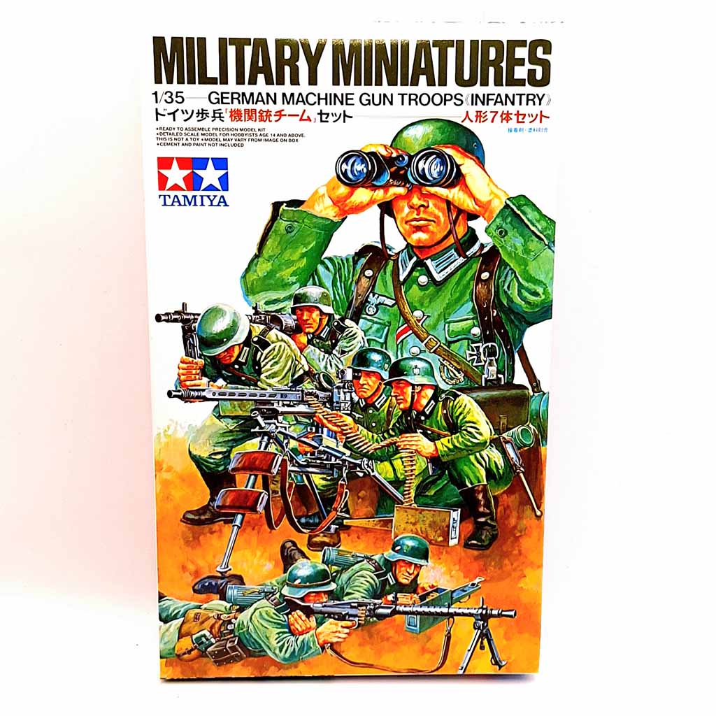 Tamiya 35038 German Machine Gun Troops Infantry. Paints and glue are not included in this set.