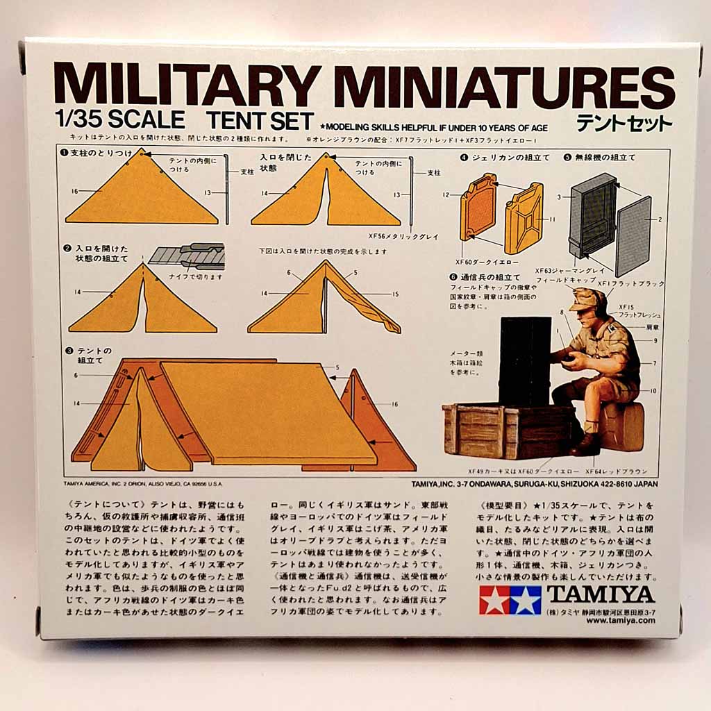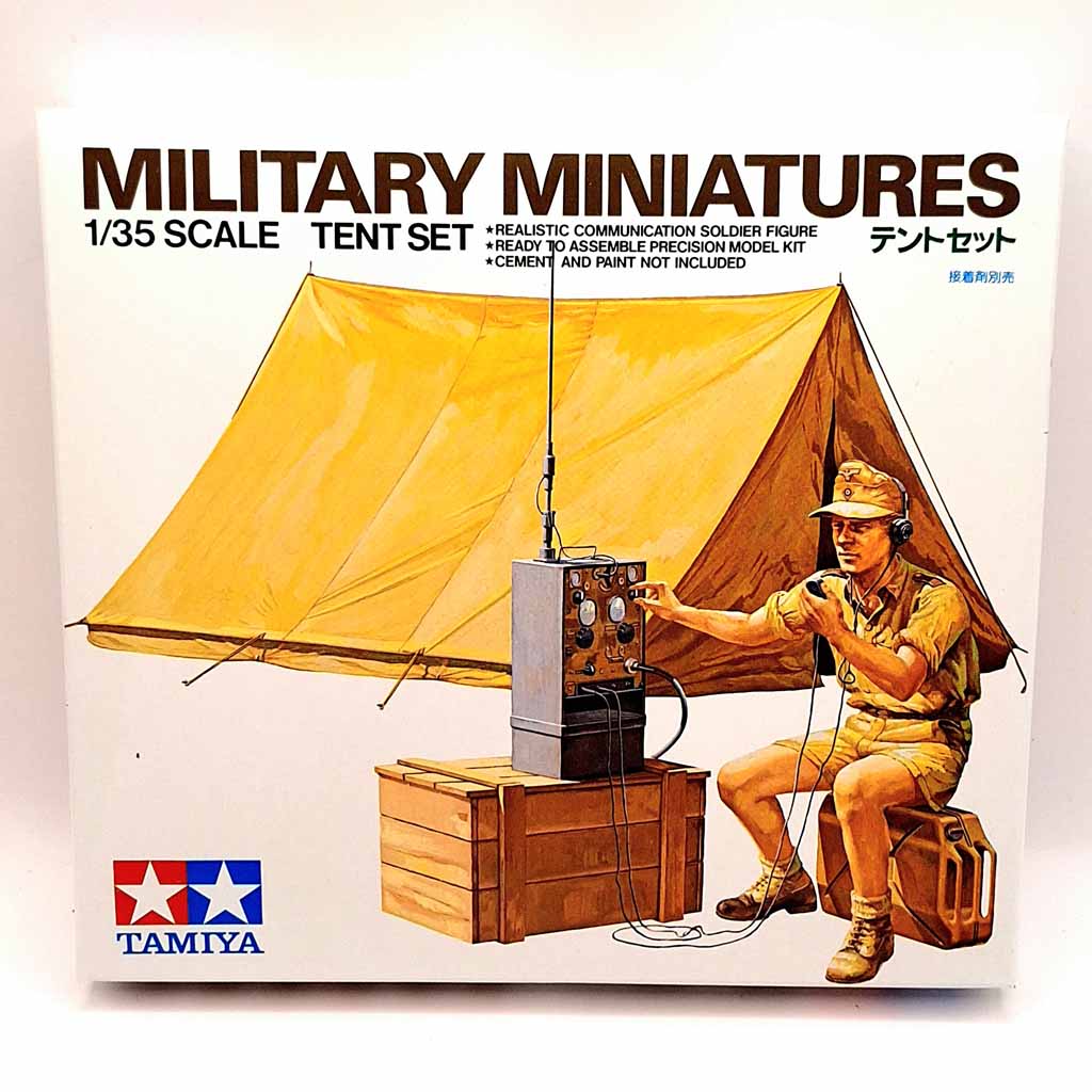 Tamiya 35074 1:35 Scale Tent Set and Radio Operator. Paints and glue are not included in this set.