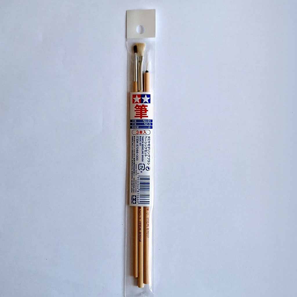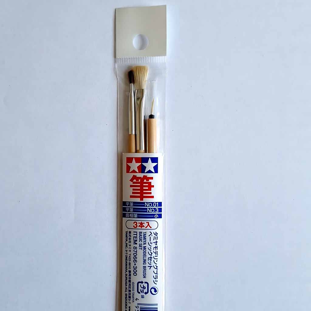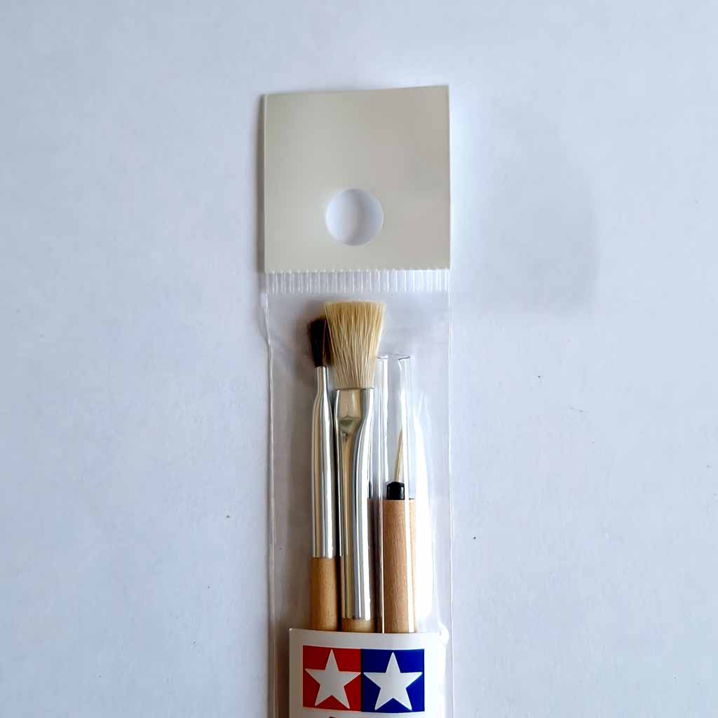 Tamiya Modelling Paint Brush Set 87066 inc Flat No 3, Flat No 1, Pointed Brush.