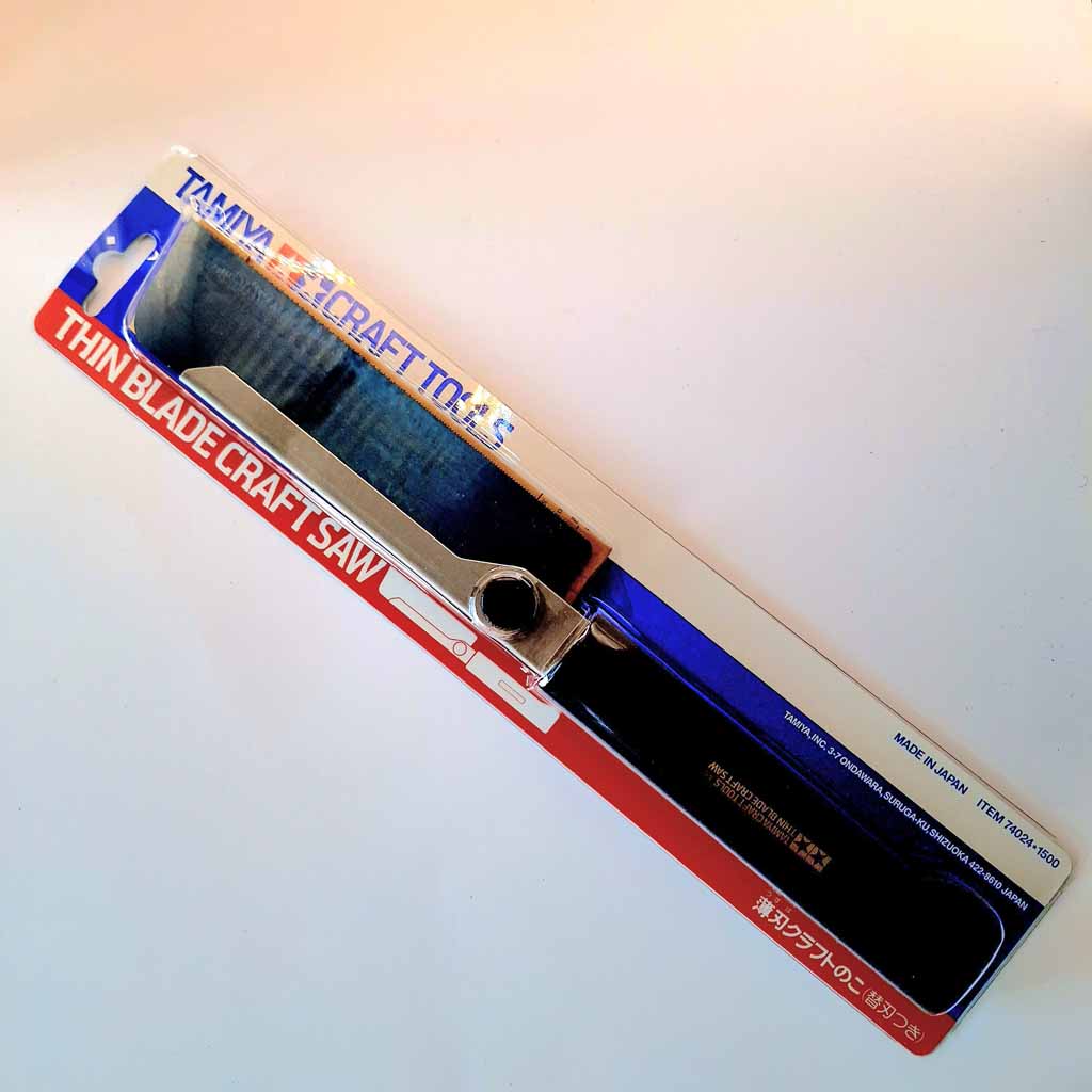 Tamiya Modelling Razor Saw 74024. This handy razor saw is ideal for cutting plastic and wood, during modeling and craftwork. The 0.25mm thickness blade is made of high quality steel, enabling a sharp finish. Blade length is 160mm. Comes with a spare blade.
