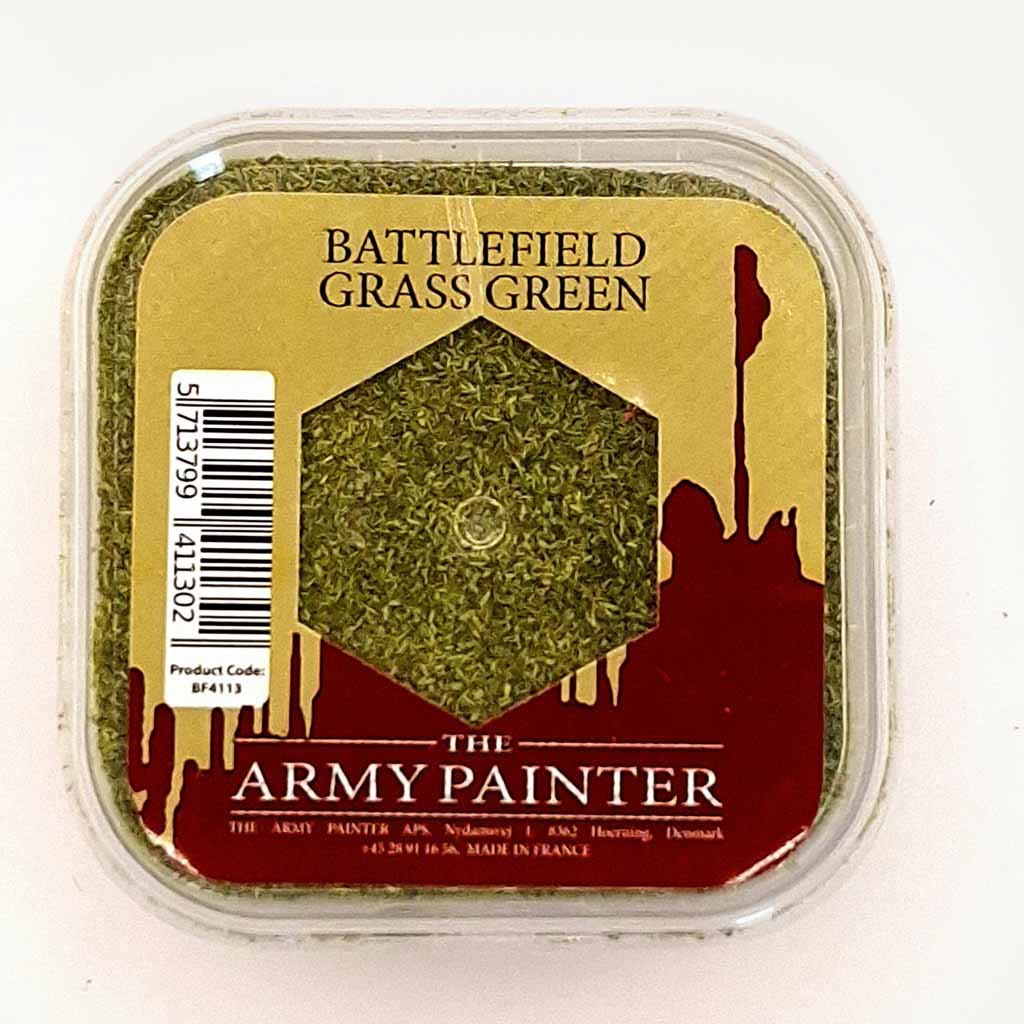 The Army Painter Battlefield Base BF4113 Grass Green 150ml. The Battlefields range has been designed to offer unlimited options for their bases and terrain needs. Essential basing materials like Battlefield Rocks, static grass, and Snow Flock are the perfect foundation for basing your miniature or entire army.