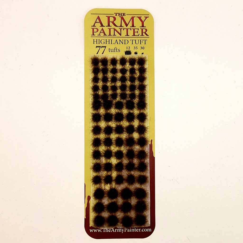 The Army Painter Battlefield Tufts BF4222 Highland Tufts. Bring your Dioramas and painted miniatures to the next level. Use The Army Painter tufts to compliment your brilliantly painted miniatures by adding a touch of scenery to them. Super realistic looking, that come in 3 different sizes for any base size.