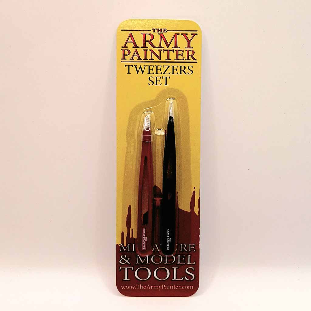 The Army Painter TL5035 2 Pairs of Tweezers Set. Great help to glue with precision and control. 2 pairs of Tweezers in this set. One pair Bevel Edged and one pair of precision tweezers.