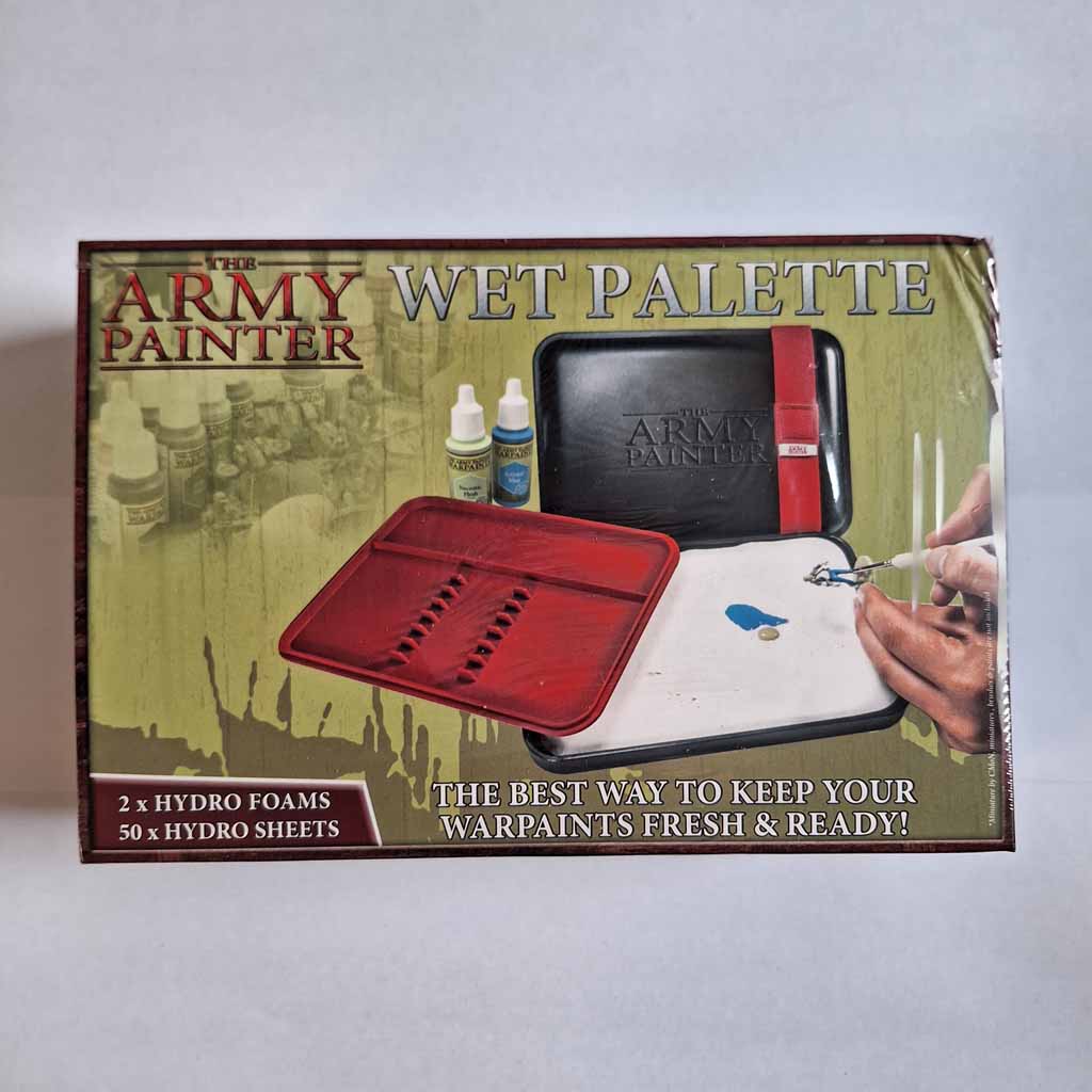 The Army Painter TL5051 Wet Palette. A stay wet palette. whether you use acrylic paint straight out of the bottle or you mix a lot, this handy wet palette will keep your miniature paint fresh for days. It’s the Army Painter hydro sheets paper that makes the difference when wet blending or thinning your paint.The Army Painter Wet Palette is probably the coolest Wet Palette out there. Produced in sleek black and burgundy plastic with an exquisite elastic travel band, The Wet Palette is 20x14x3.5cm and easy to bring along, the supplied elastic travel band ensuring that everything is neat and tidy for your model paint brushes.Designed to keep 6 Army Painter Brushes, 10 Hobby Brushes and your fine detail paint brushes. This Army Painter Wet Palette is perfect for storing your most used brushes with your acrylic paint For miniature painting like Warhammer and Dungeons And Dragons.The Army Painter Wet Palette, includes 2 Hydro Foam sponges And 50 Hydro Sheets paper. This Ensures a longer painting time while maintaining the quality of the acrylic paint.