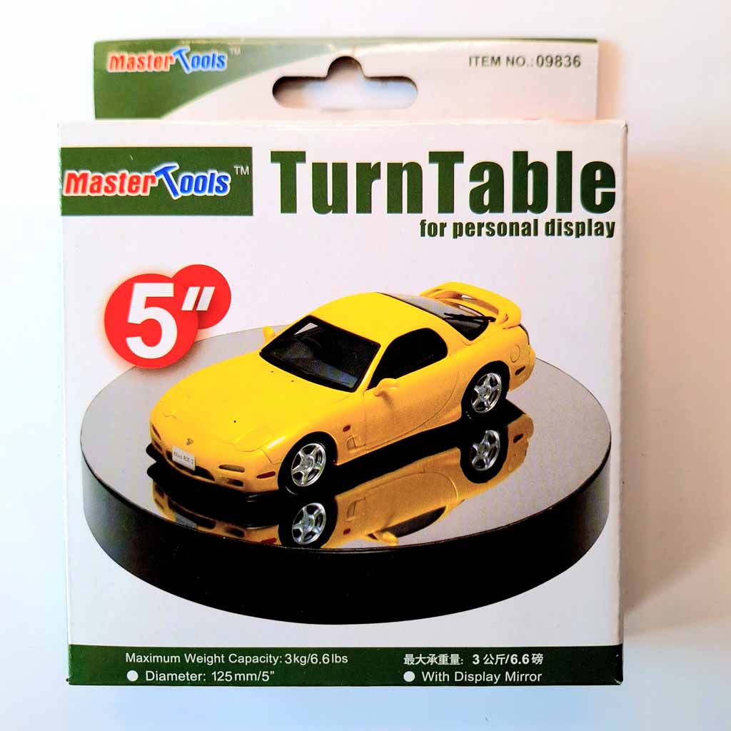 Trumpeter Turntable Display – 125mm Diameter. Batteries are required to facilitate rotation.