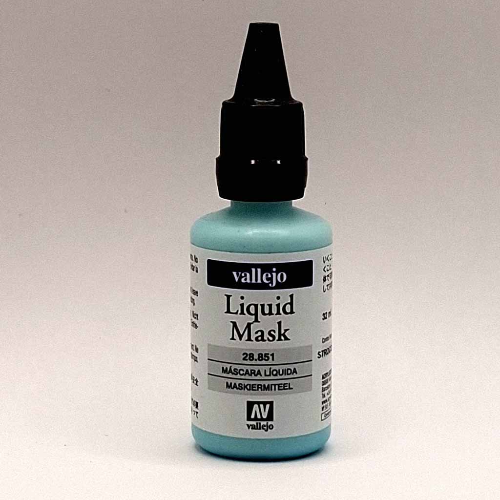 Vallejo 28851 32ml Liquid Mask. Liquid Mask is used to reserve areas which are to remain unpainted. Once the work is dry, liquid mask is rubbed off with an eraser or piece of cloth, revealing the unpainted area.