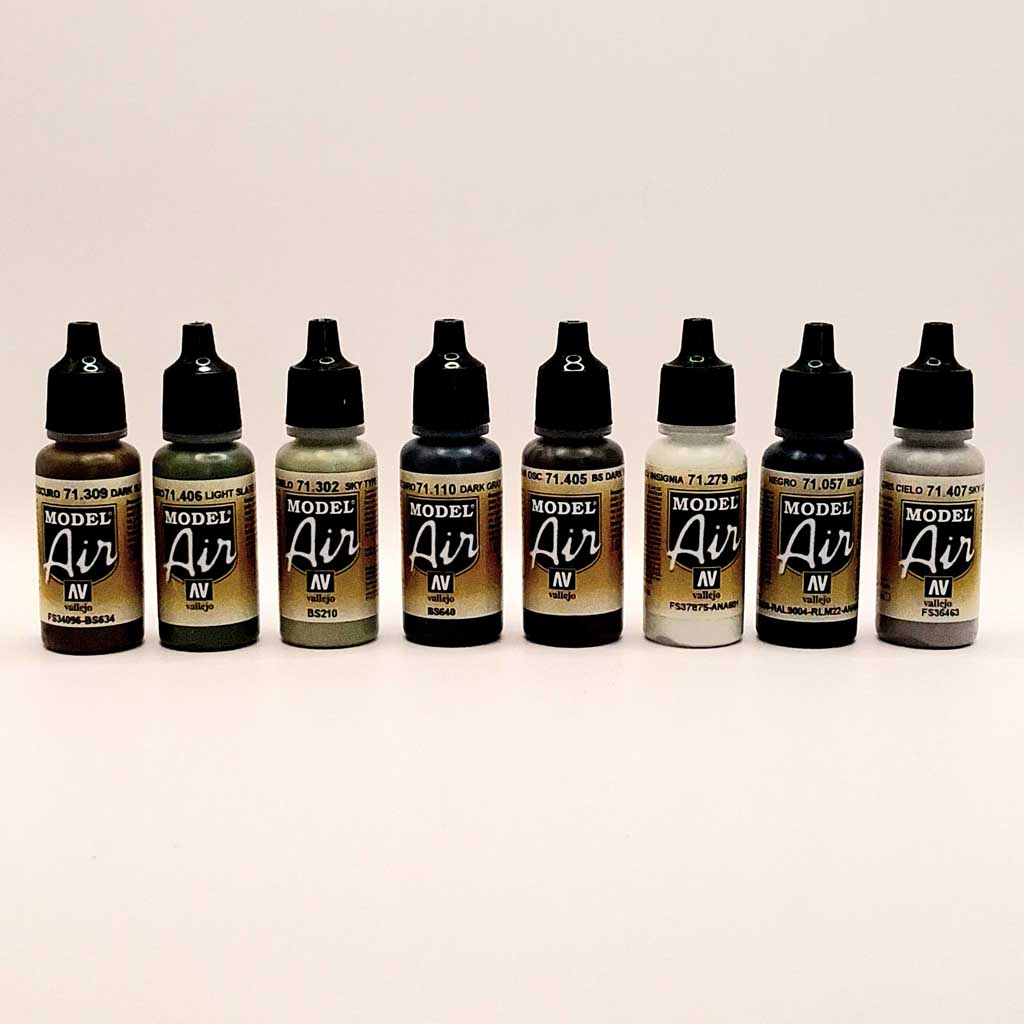 Vallejo 71147 FAA (Fleet Air Arm) Colours 1939-1945 8 Colour Set. Set of Model Air colors developed for painting aircraft of the Fleet Air Arm (FAA) of the British fleet, for land-based aircraft or embarked on carriers from 1939 until the end of the WWII, British or American.